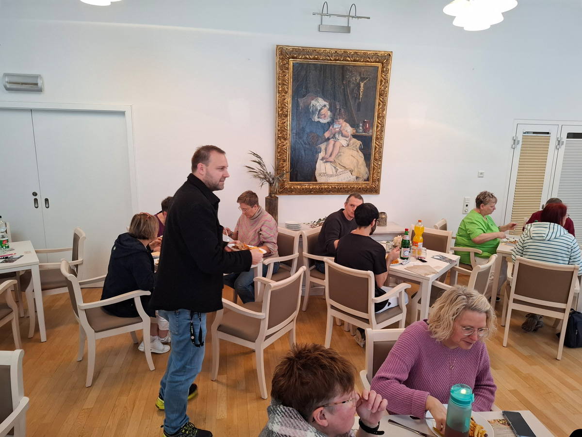 Ein besonderes Highlight war die Möglichkeit, mit einigen unserer Bewohner*innen ins Gespräch zu kommen und sie zu interviewen – ein Austausch, der für beide Seiten bereichernd war. Zur Stärkung gab es anschließend leckere Pizza für alle.