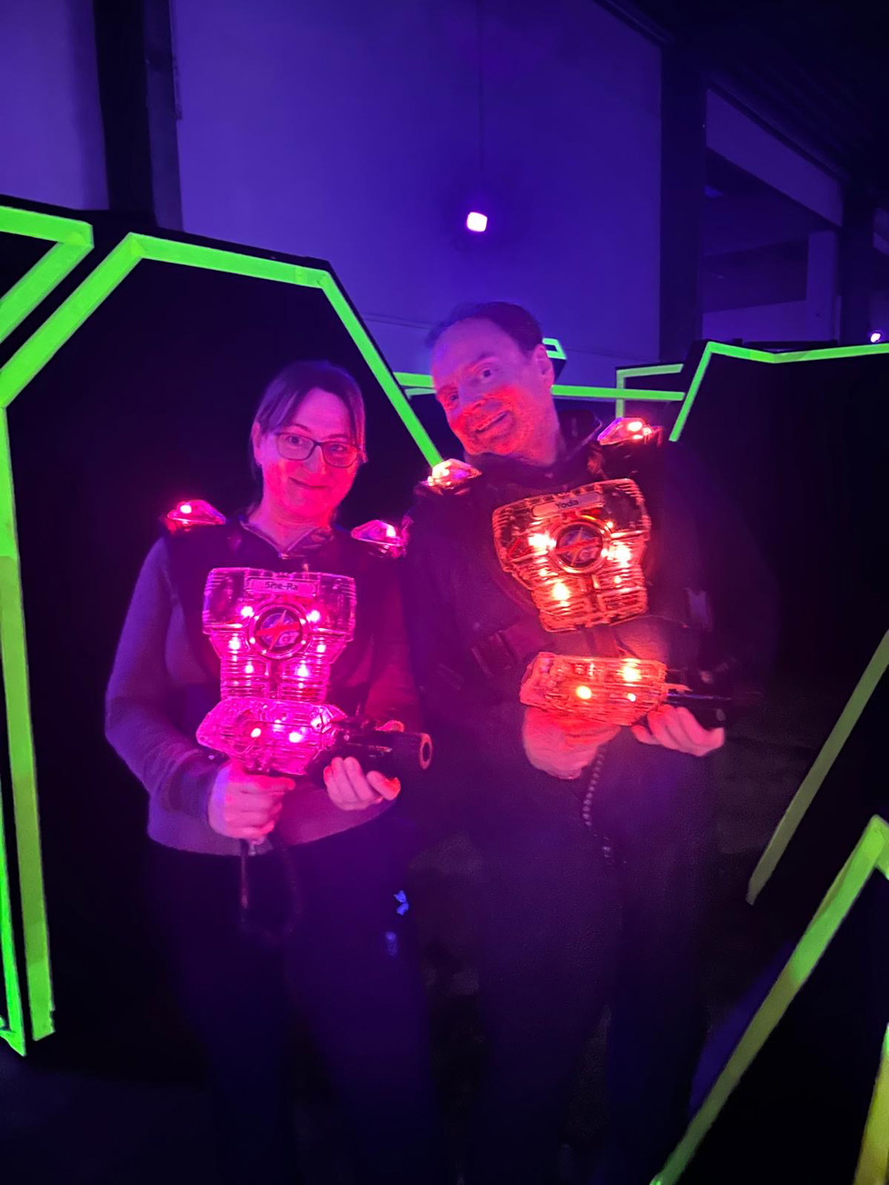 Einmal im Monat treffen sich Mitarbeiter, die Lust haben, privat zum Lasertag in Lüneburg mit Partner und/oder Kind.